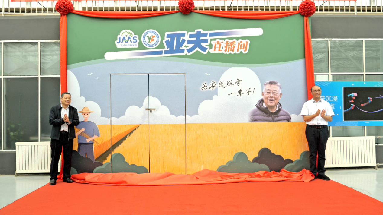 陈新与顾军共同为“亚夫直播间”进行揭牌。揭牌后,“亚夫直播间”迎来首播。首播主题为“麦田杂草防控技术”,首播专家为植保所副所长王红春研究员。直播在《江苏农业科技报》微信视频号、抖音号、今日头条号等平台同时播放。